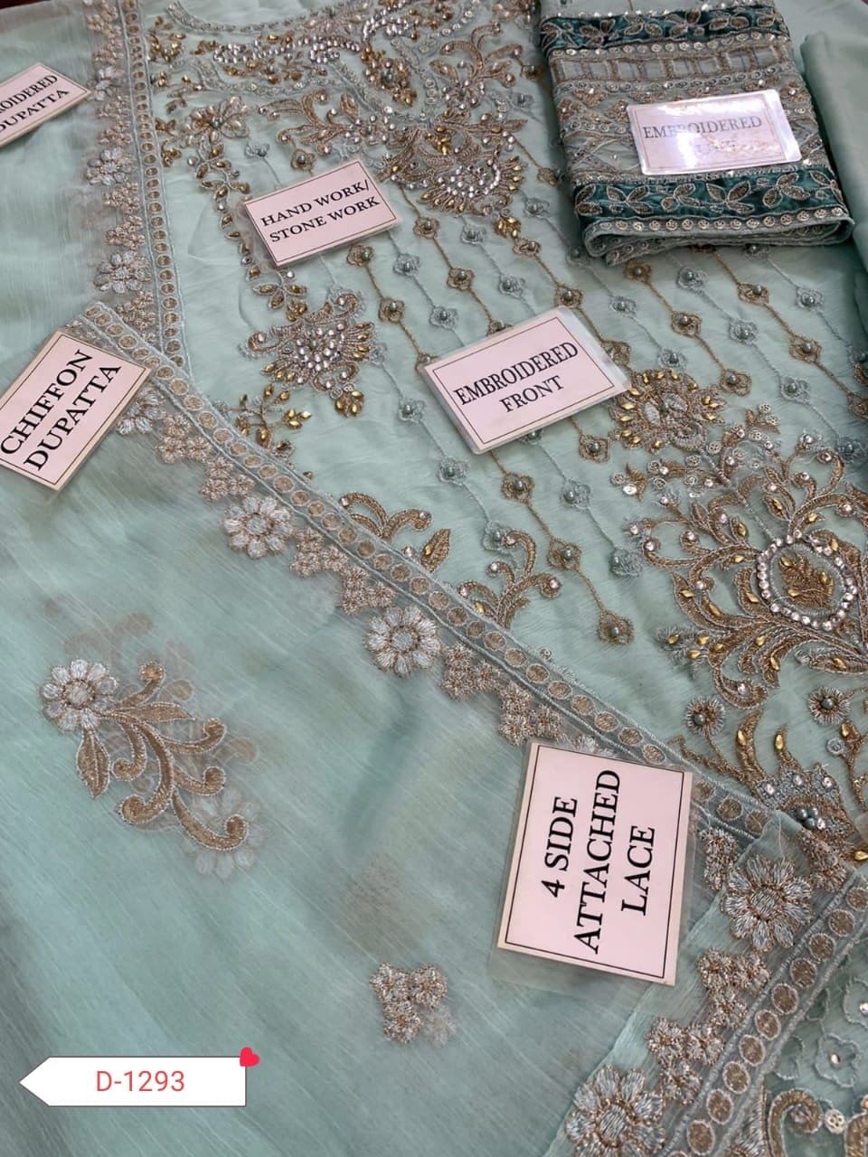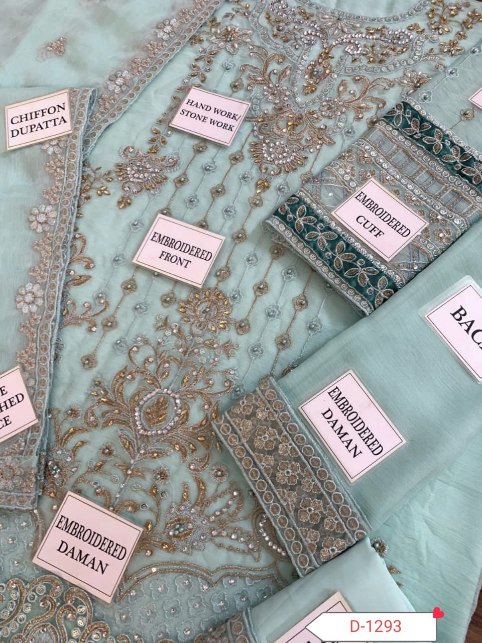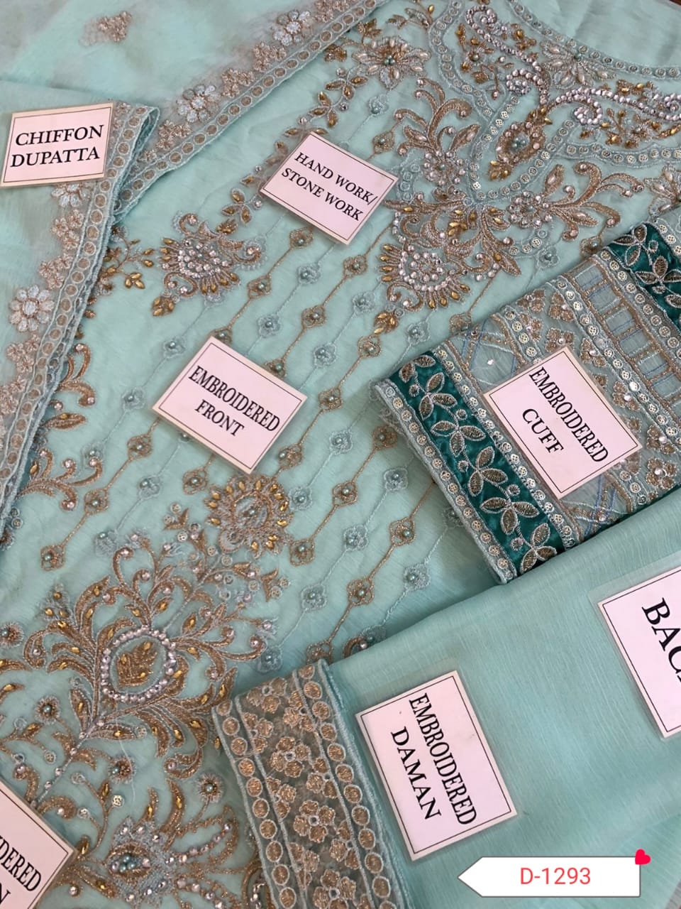 HEAVY EMBROIDERED CHIFFON FRONT EMBELLISHED WITH HANDWORK AND STONE WORK